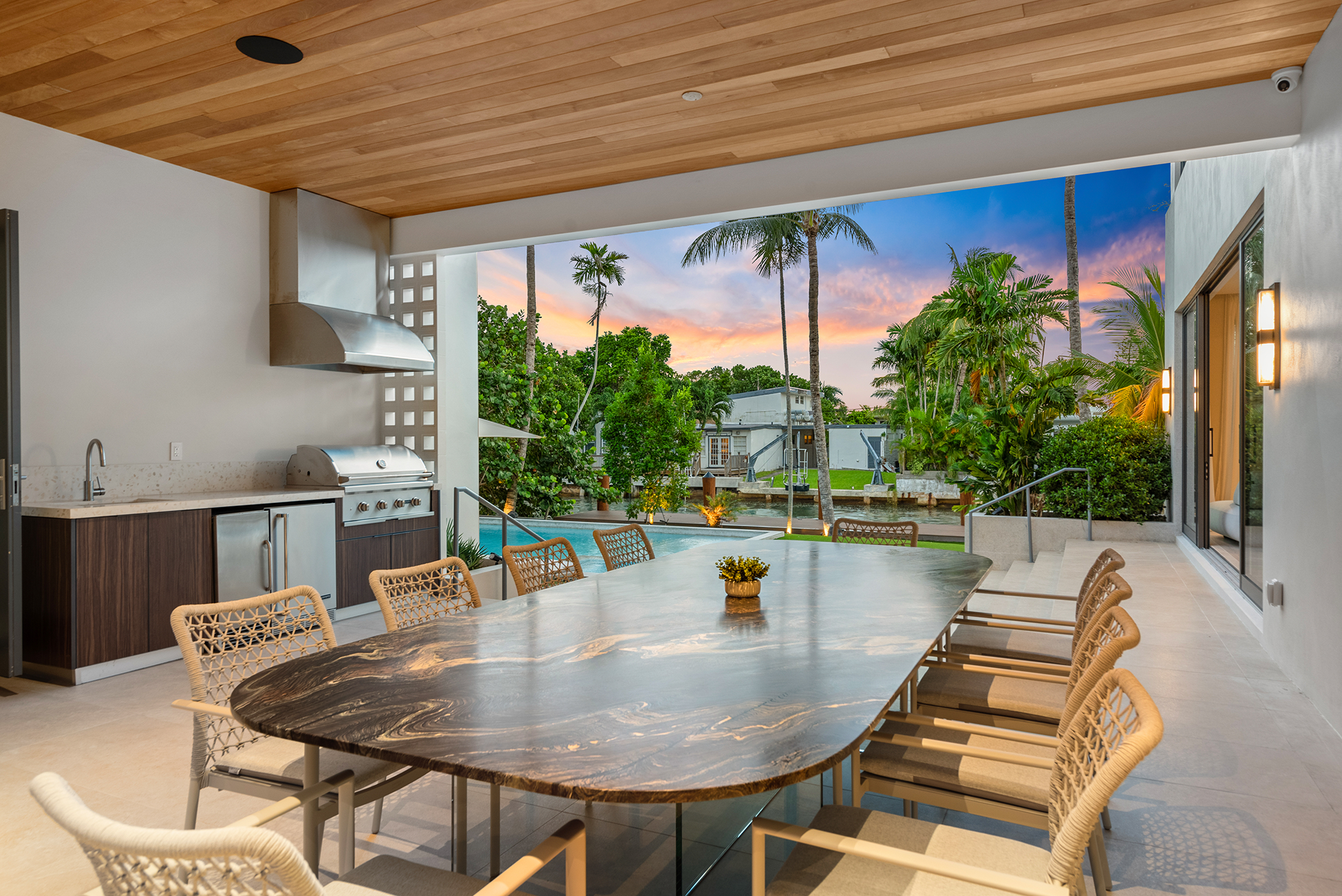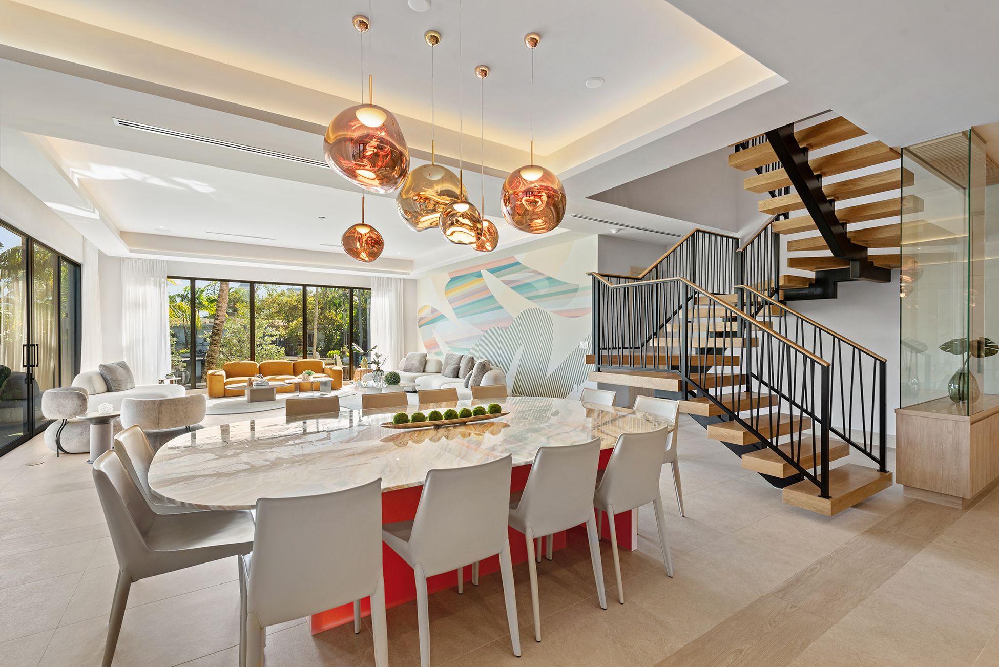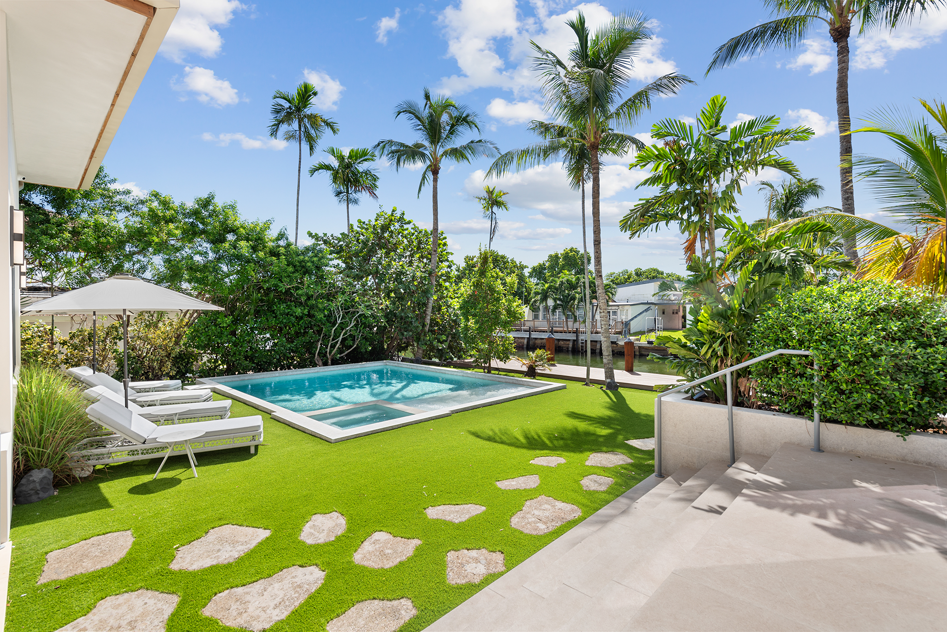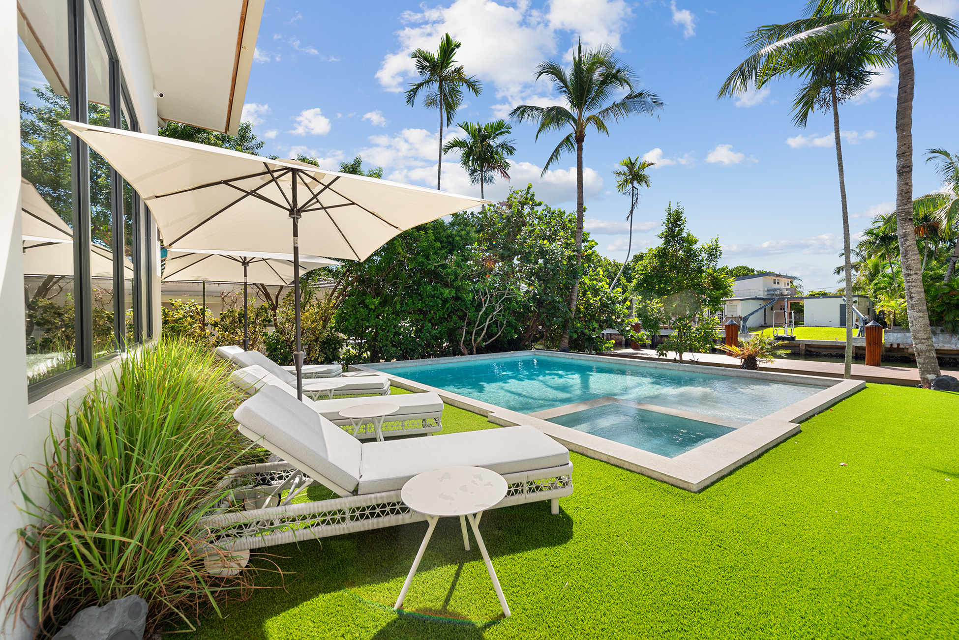 The home was intentionally broken down to avoid visual bulk on its 10,000-square-foot lot. By carving out breezeways and shaded transitions, the architecture encourages cross-ventilation—critical in South Florida’s climate.