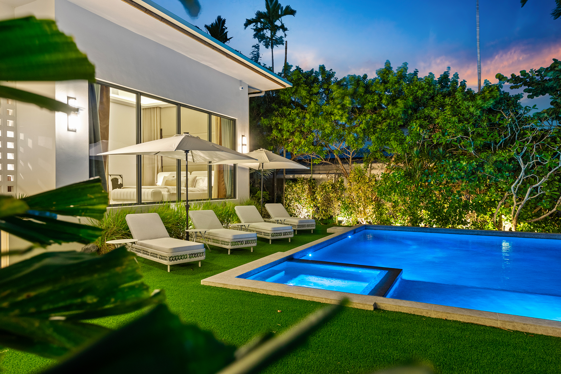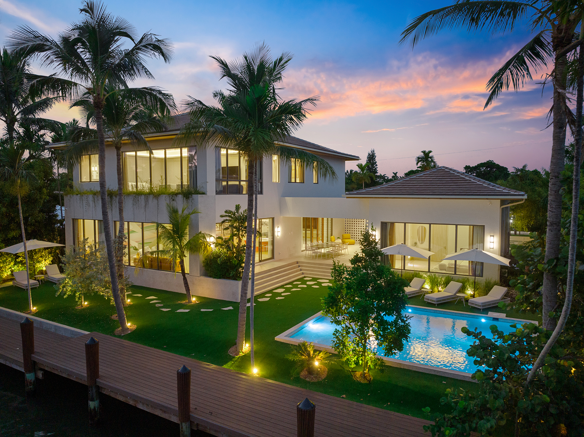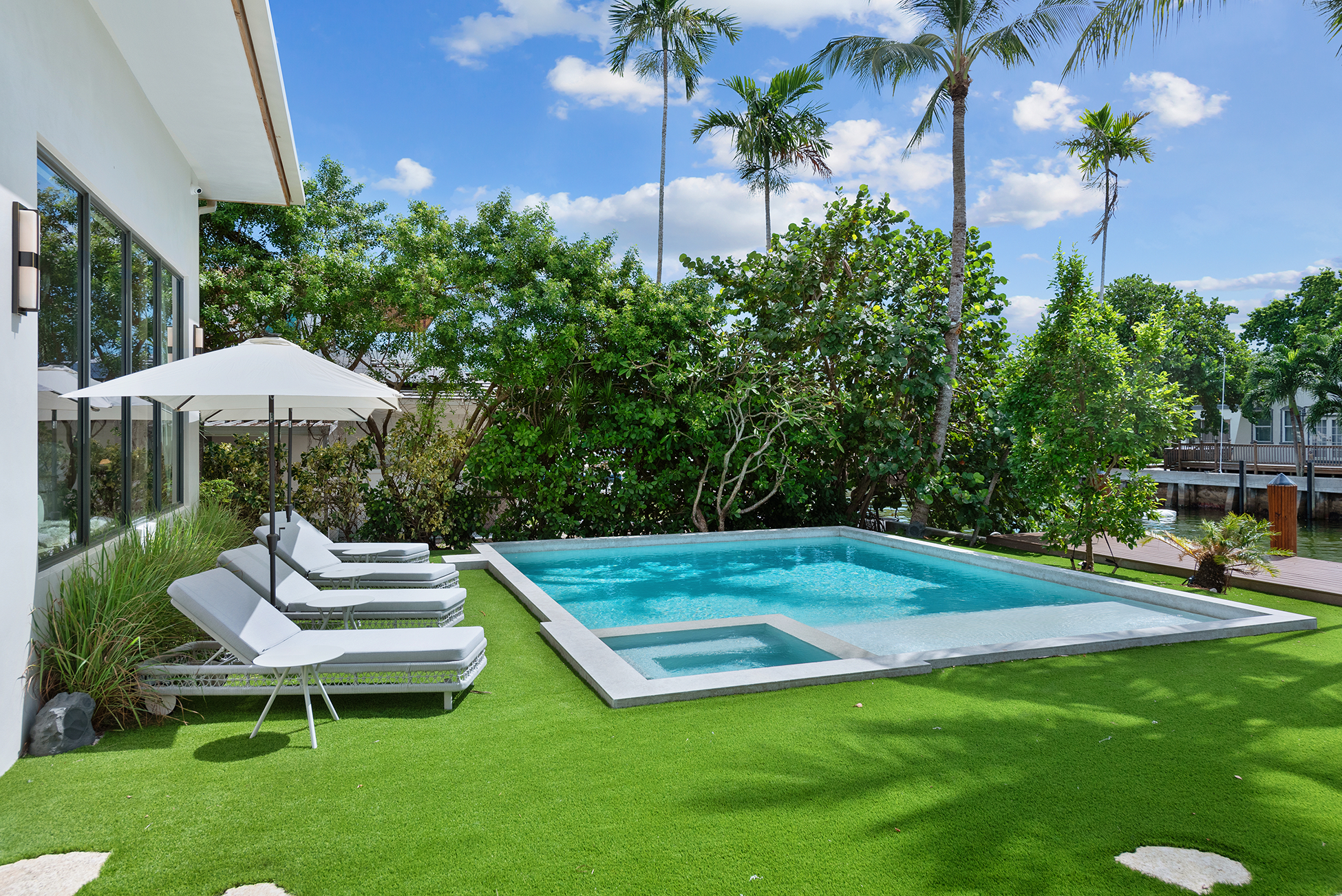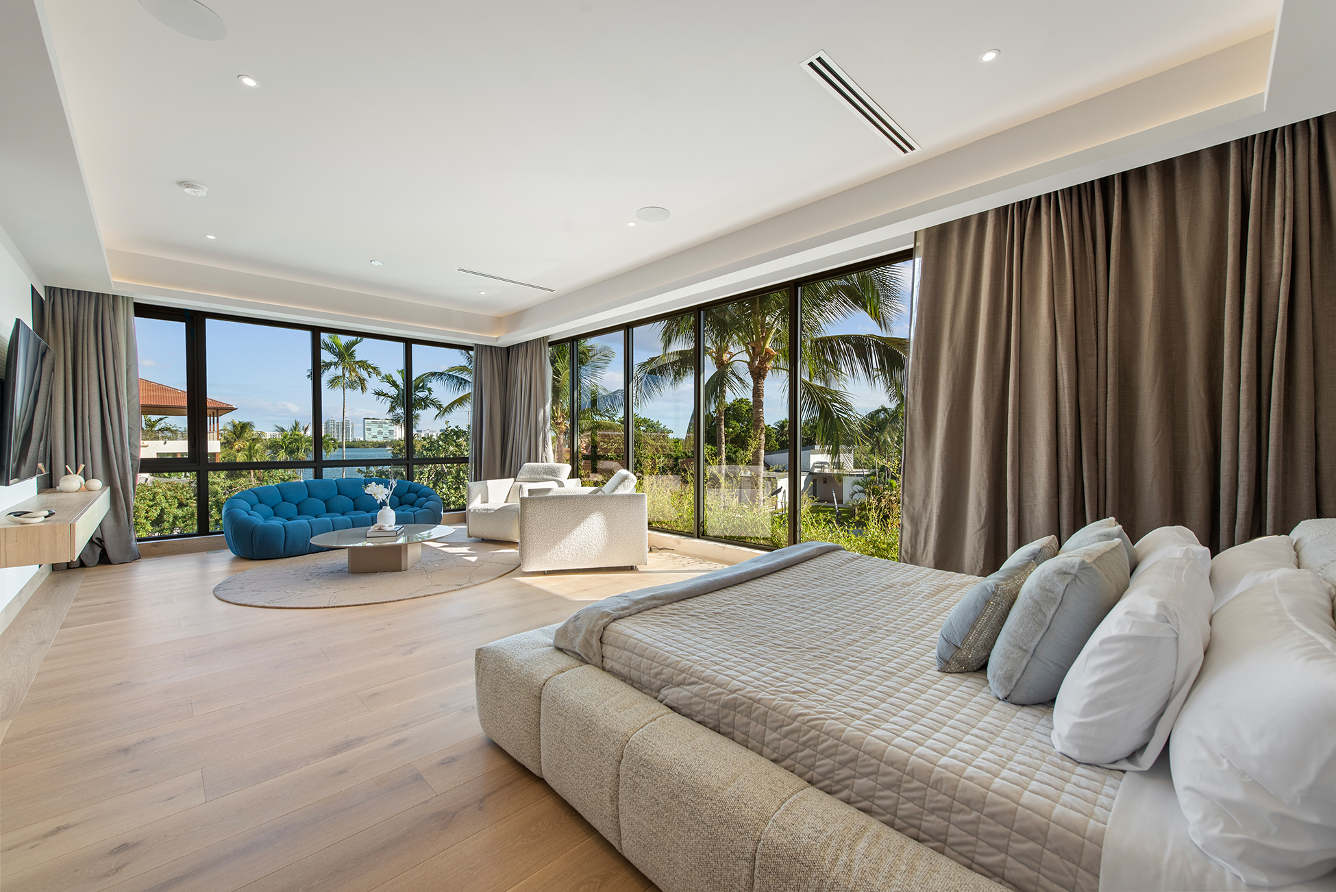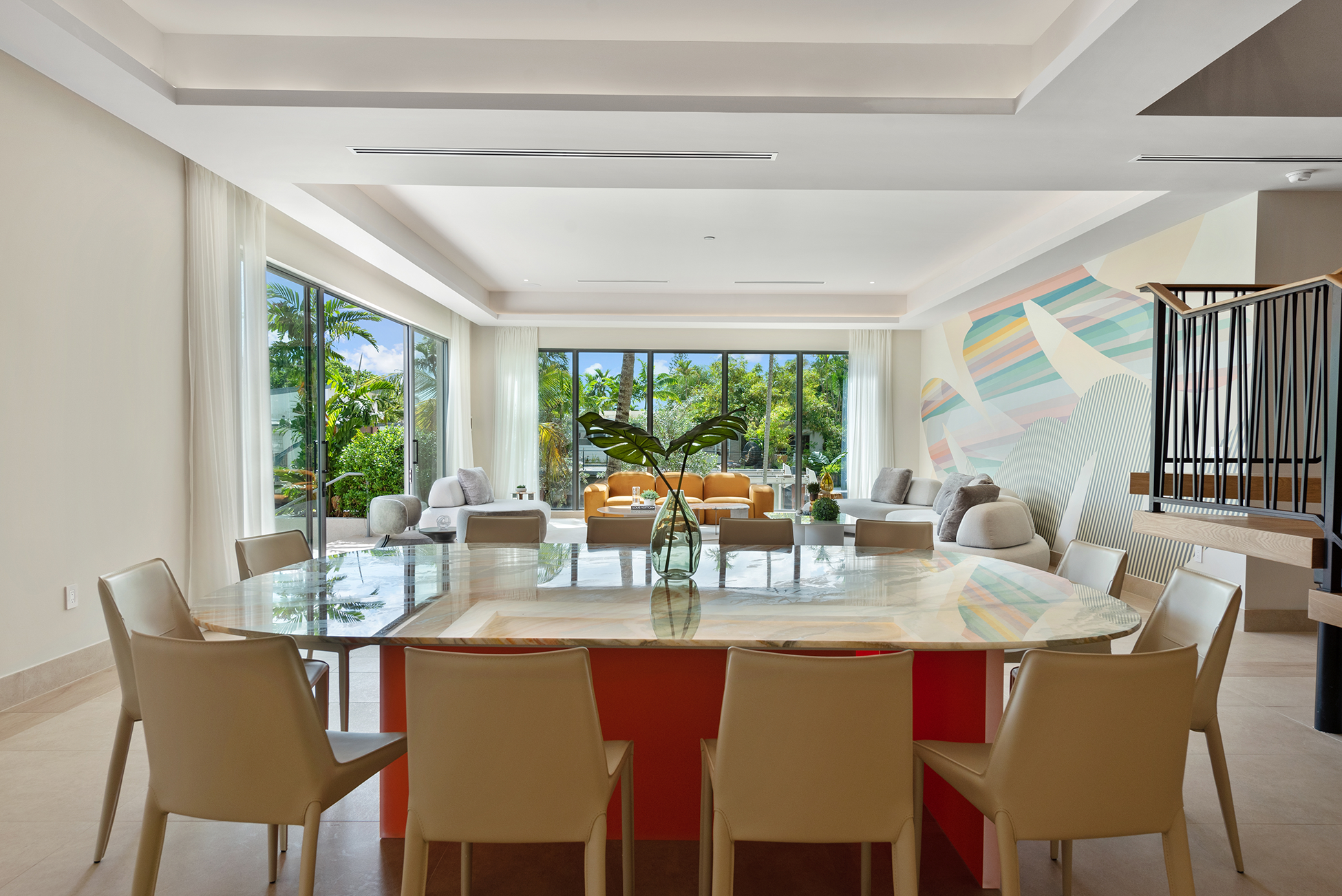 The home was intentionally broken down to avoid visual bulk on its 10,000-square-foot lot. By carving out breezeways and shaded transitions, the architecture encourages cross-ventilation—critical in South Florida’s climate.