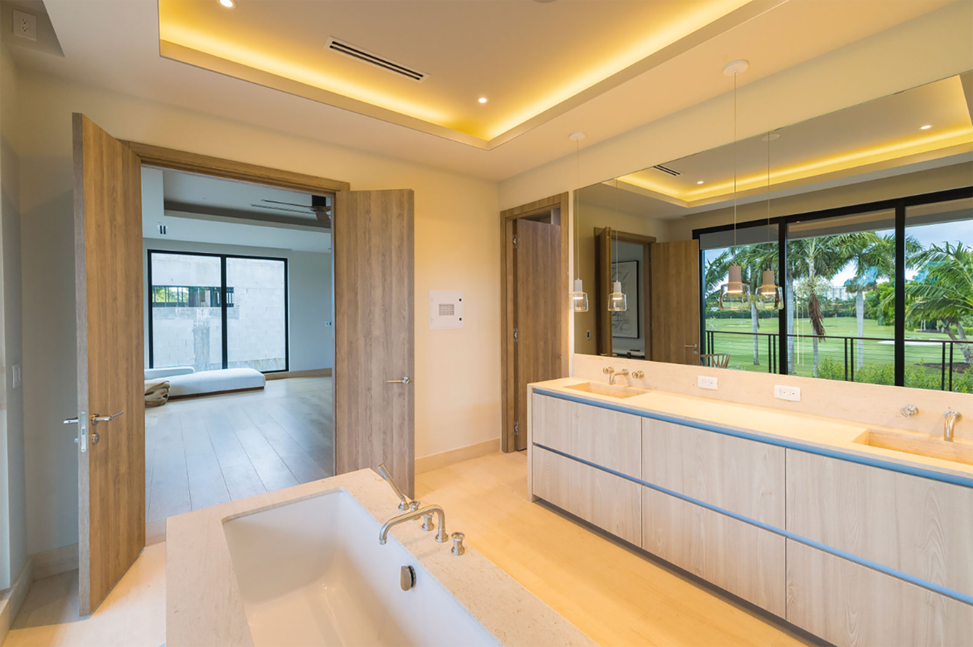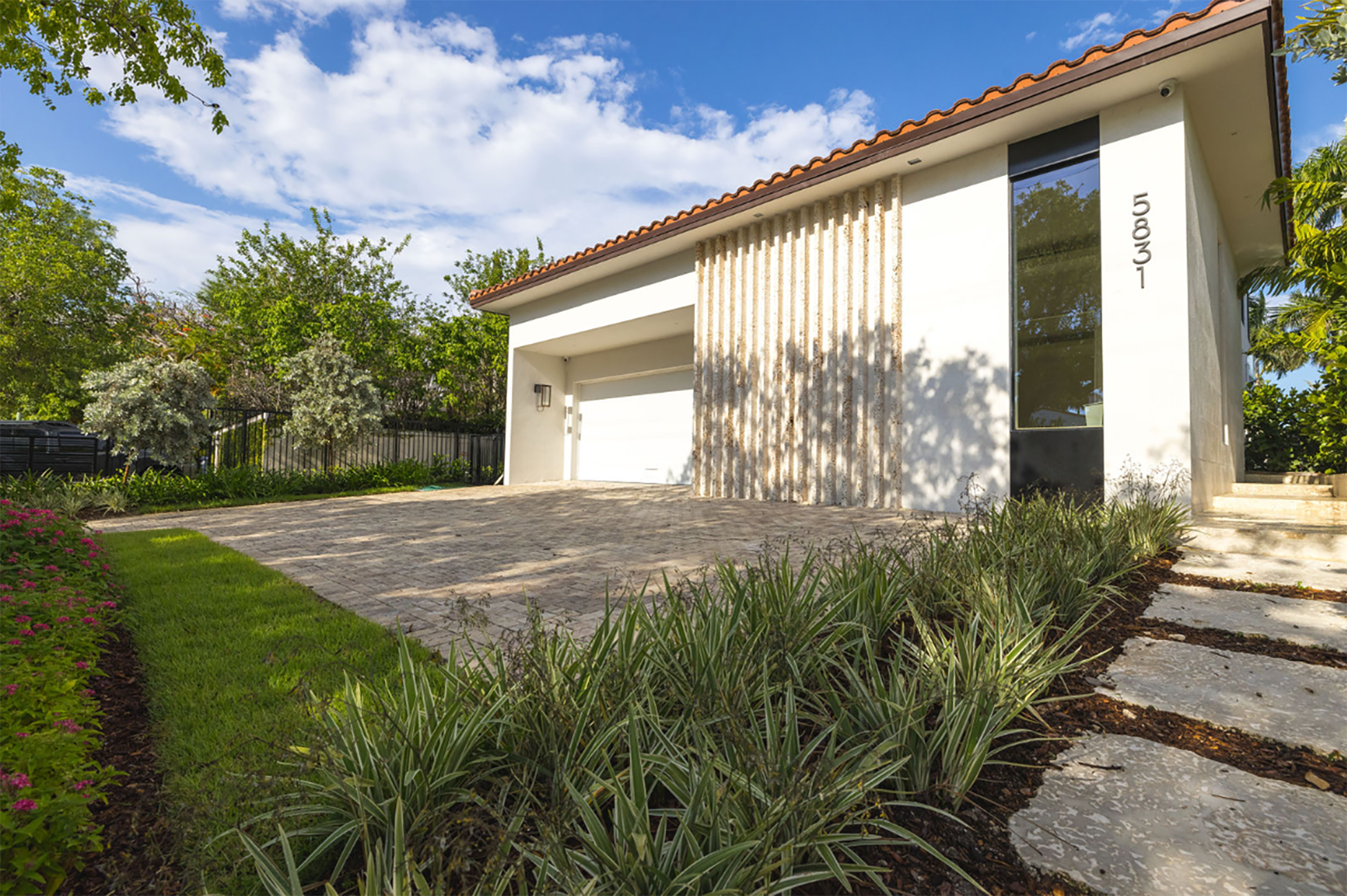The exterior draws from Spanish Colonial influence—arched proportions, textured surfaces—while maintaining contemporary discipline in detailing. The structure feels rooted in Miami’s architectural heritage, yet contemporary, while incorporating modern design.
